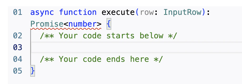 To run arbitrary code, select the Execute code tab. Then, click Edit Code. You will see a window with a code editor. Simply add your code above. The proper syntax for accessing columns you’ve identified as dependencies is row[propertyName], and the displayed cell value is what’s returned by this function. You can call asynchronous functions within the function, and have the Axios library available to perform HTTP requests. For instance, the following code will return the Fibonacci number of the row value for the column number.