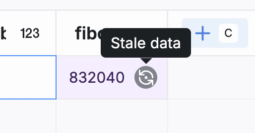 To ensure computed values are always kept up to date, we recommend Auto-compute be toggled on. If you don’t have Auto-compute enabled, a grey icon will appear next to stale table cells. To update the stale data, simply re-activate Auto-compute.